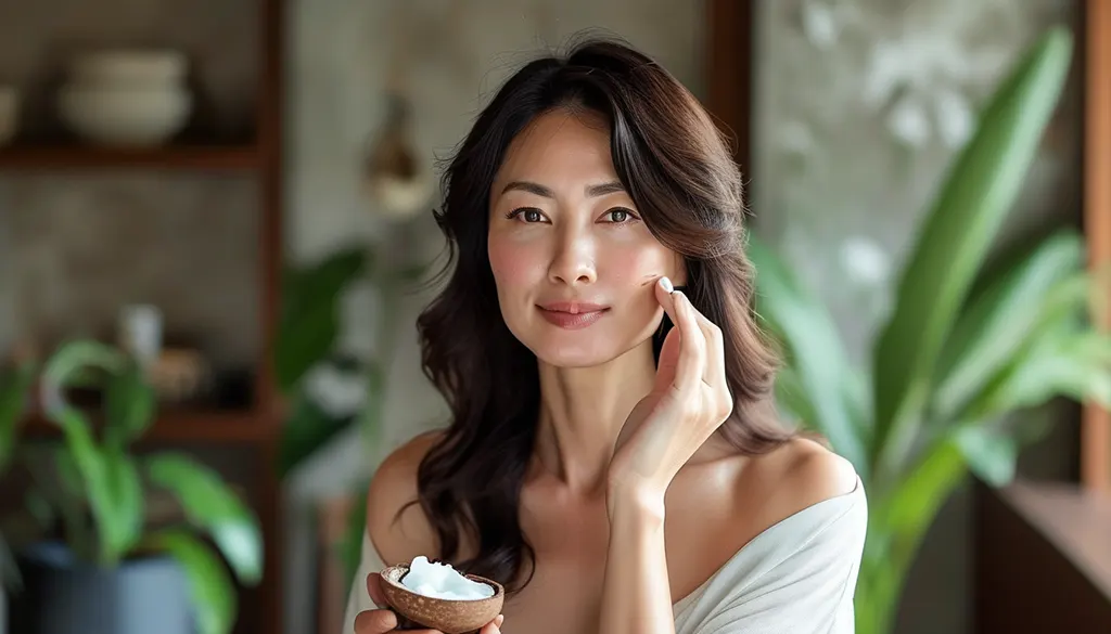 - น้ำมันมะพร้าว: มีคุณสมบัติในการให้ความชุ่มชื้นและบำรุงผิวอย่างล้ำลึก ช่วยป้องกันการสูญเสียน้ำจากผิว ทำให้ผิวดูเรียบเนียนและกระชับขึ้น