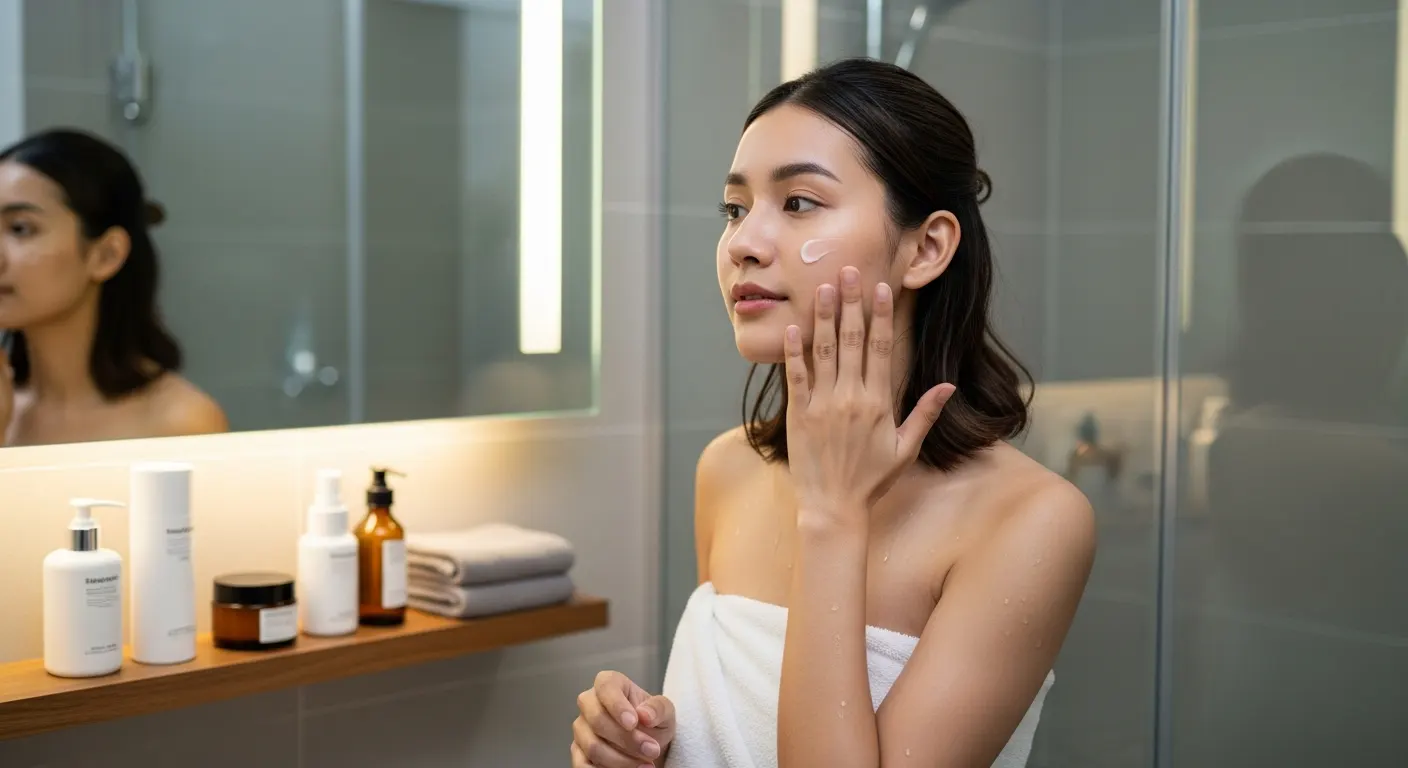การดูแลผิวหลังอาบน้ำเพื่อรักษาสมดุลความชุ่มชื้นและลดความมันเกินไป ควรตั้งต้นที่